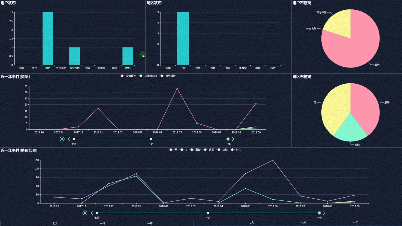 具備報(bào)警事件、平臺(tái)操作、系統(tǒng)事件詳細(xì)的記錄;方便統(tǒng)計(jì)各子系統(tǒng)事件及事件處理 。 平臺(tái)操作記錄,記錄各操作員登錄、注銷、關(guān)閉系統(tǒng)事件記錄;方便對(duì)操作員進(jìn)行管理。系統(tǒng)事件記錄,記錄系統(tǒng)通訊異常、系統(tǒng)設(shè)置、修改等記錄;對(duì)故障分析有力支持。報(bào)警系統(tǒng)事件查詢統(tǒng)計(jì),可查詢各類事件在某時(shí)間段內(nèi)的信息及實(shí)時(shí)狀態(tài),以及事件及異常時(shí)間趨勢(shì)等。智能圖形化報(bào)表會(huì)隨著報(bào)警用戶及防區(qū)點(diǎn)位狀態(tài)及事件的變化,自動(dòng)實(shí)時(shí)動(dòng)態(tài)更新。
