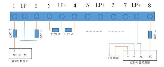 自帶防區(qū)前端探測(cè)器連接圖