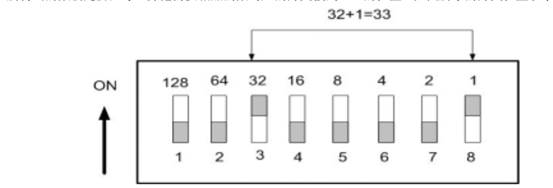 模塊 “On”字樣朝上(線朝下),二進(jìn)制編碼,從右到左(1 2 4 8 16 32 64 128)