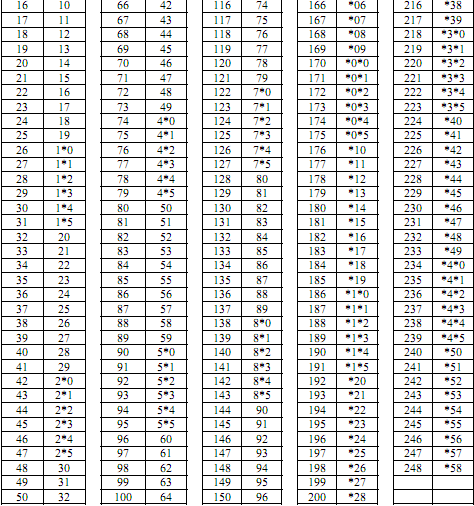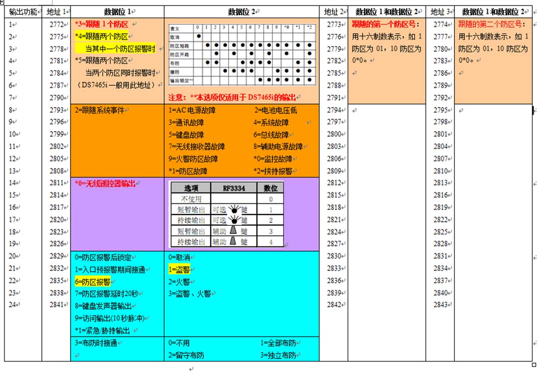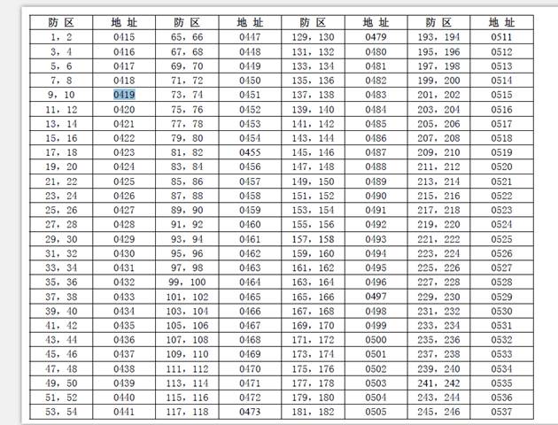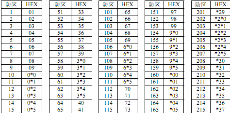 防區(qū)所對(duì)應(yīng)模塊類型的編程地址碼對(duì)照表: