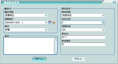 在集成平臺(tái)軟件的事件聯(lián)動(dòng)設(shè)置, 聯(lián)動(dòng)點(diǎn)對(duì)應(yīng)設(shè)備ID, 聯(lián)動(dòng)事件對(duì)應(yīng)事件代碼或者事件代碼-事件內(nèi)容,如下圖: