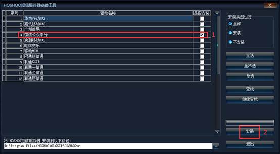 《短信服務(wù)器》文件夾 → 《短信服務(wù)器按照工具》點(diǎn)擊運(yùn)行頁面如下: