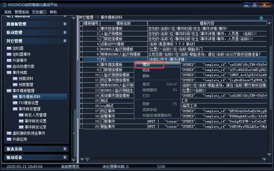 增加事件模板資料如下: