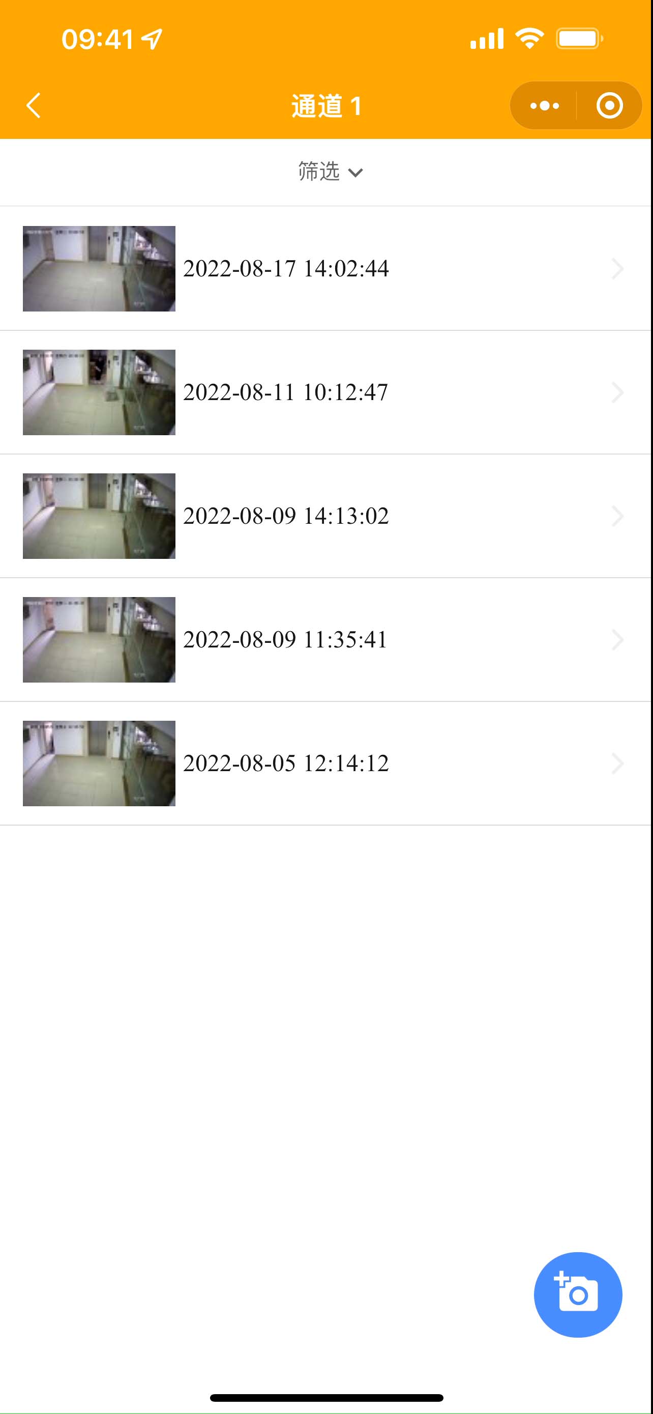 5. 點(diǎn)擊通道進(jìn)入攝像機(jī),使用右下角的拍照按鈕可以進(jìn)行抓拍,并記錄事件到安防智能化集成平臺(tái)端和小程序端;點(diǎn)擊圖片列表中的圖片會(huì)顯示大圖。