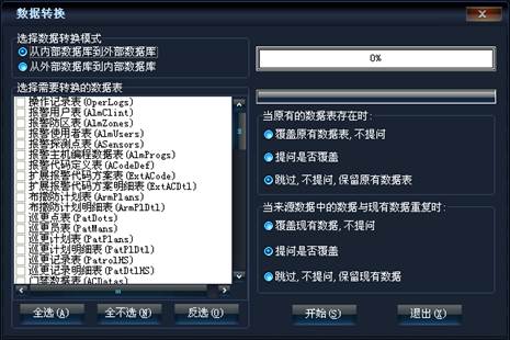 選擇數(shù)據(jù)轉(zhuǎn)換模式,選擇要轉(zhuǎn)換的數(shù)據(jù)表,選擇覆蓋方式,點(diǎn)擊【開始】按鈕,將進(jìn)行數(shù)據(jù)轉(zhuǎn)換。