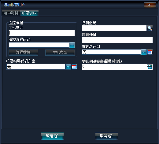 可錄入報警用戶的聯(lián)系信息和主機類型及用戶備注。