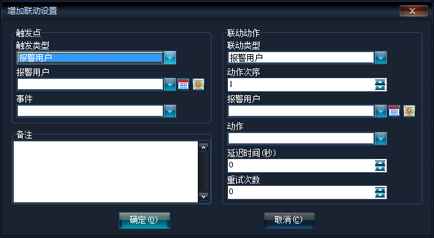 右鍵菜單,點擊【增加】,將彈出增加聯(lián)動設置框,如下圖: