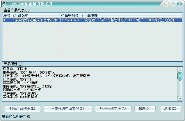 3、單擊【刷新產品列表】按鈕,顯示當前加密鎖產品名稱及產品屬性。