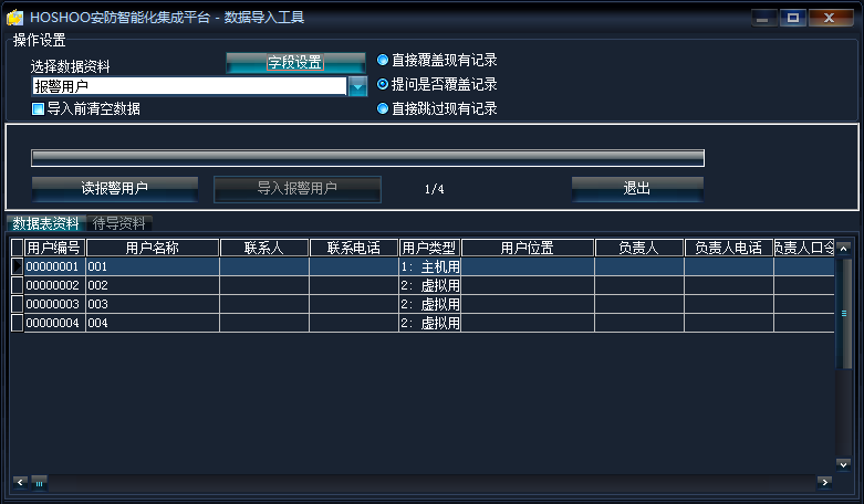 用戶編號不允許重復,用戶名稱不允許為空,這些是報警用戶必須的信息。
